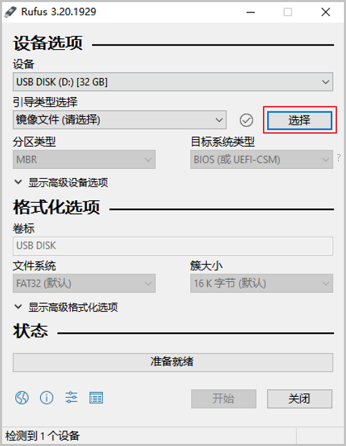 选择好ISO镜像后,其他Rufus选项按照默认设置,点击开始