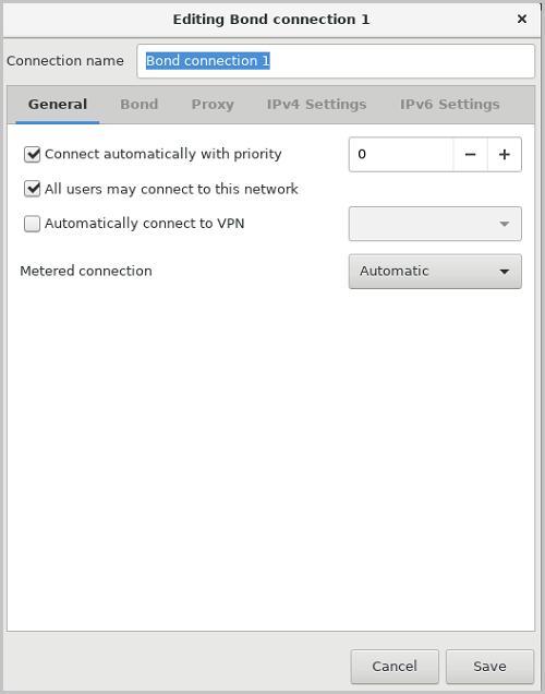 ens3配置界面,点击General > Connect automatically with priority (0) > Save,修改网卡自动激活。
