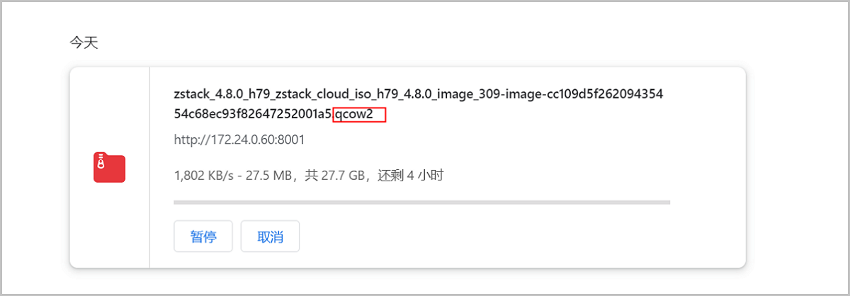 ZStack Cloud 4.8.0开始,从云平台导出镜像文件时,系统将自动为文件名添加格式后缀,便于用户识别导出的镜像格式。