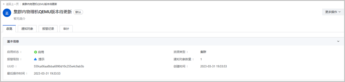 2. 新增默认事件报警器集群内物理机QEMU版本待更新
