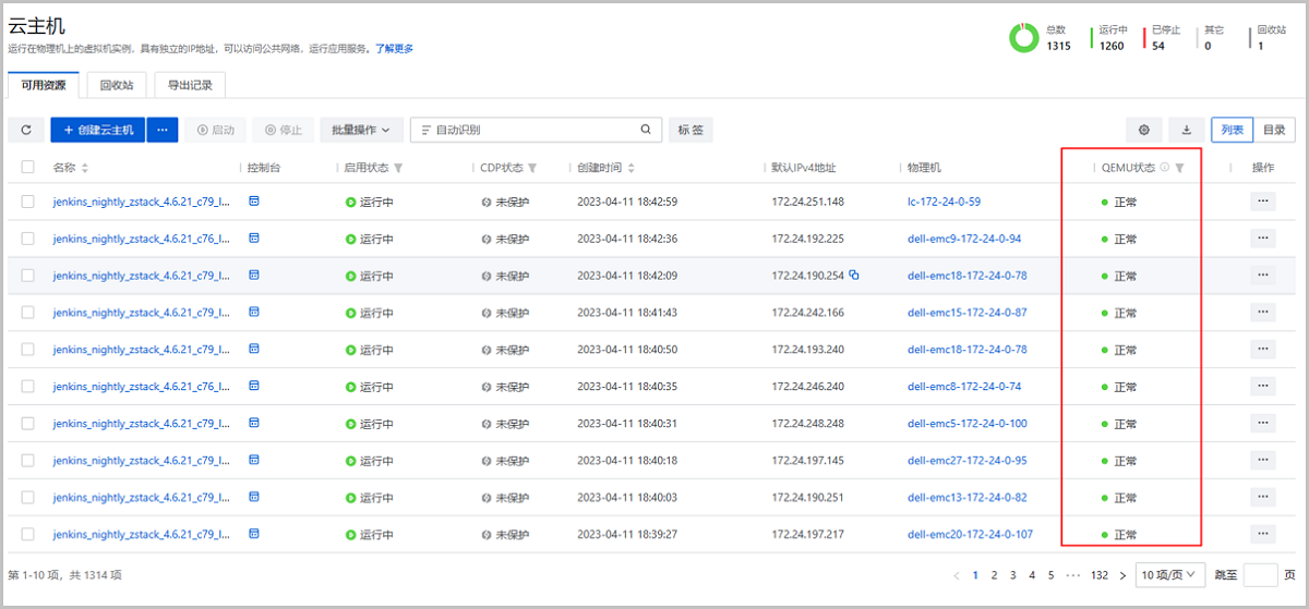 图 4. 云主机主列表QEMU状态列