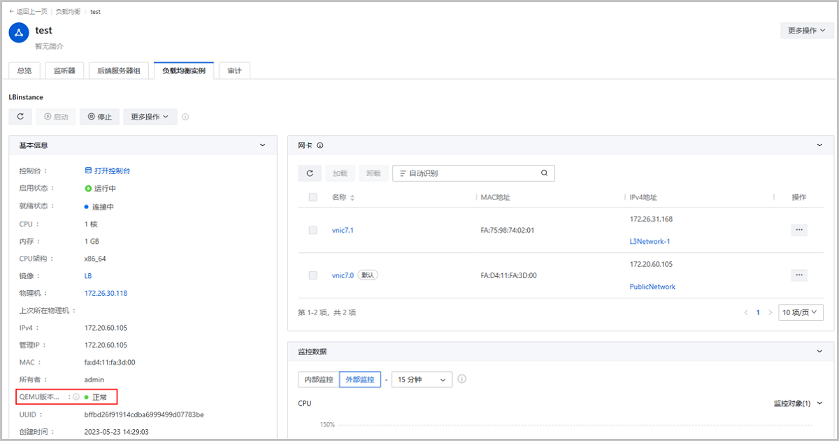 图 6. 负载均衡实例详情页QEMU状态