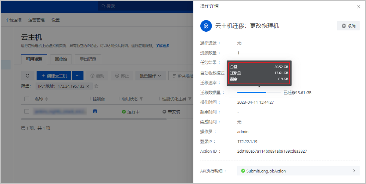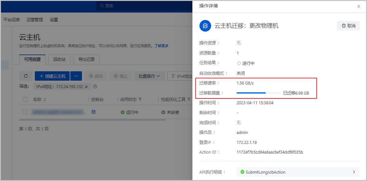 云主机热迁移新增展示:迁移速率、迁移数据量