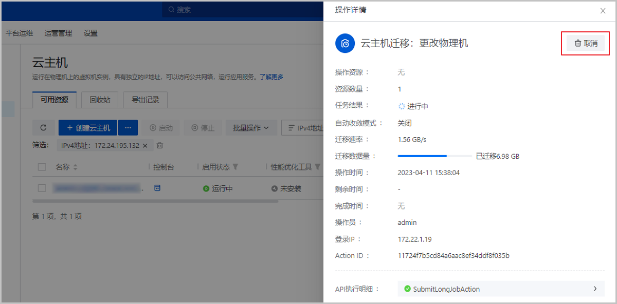 2. 云主机热迁移支持取消任务