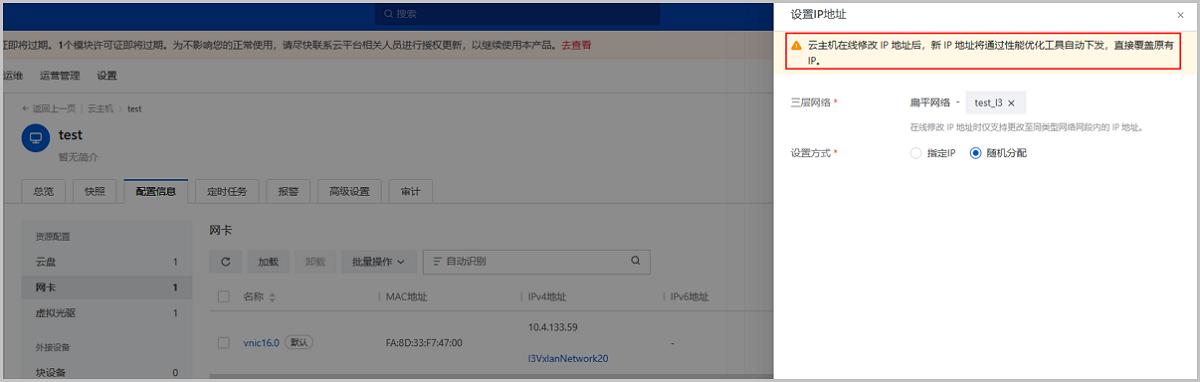 • 云主机在线修改网络配置:支持为云主机配置静态IP并通过性能优化工具下发网络配置