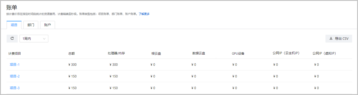 4. 查看项目账单。