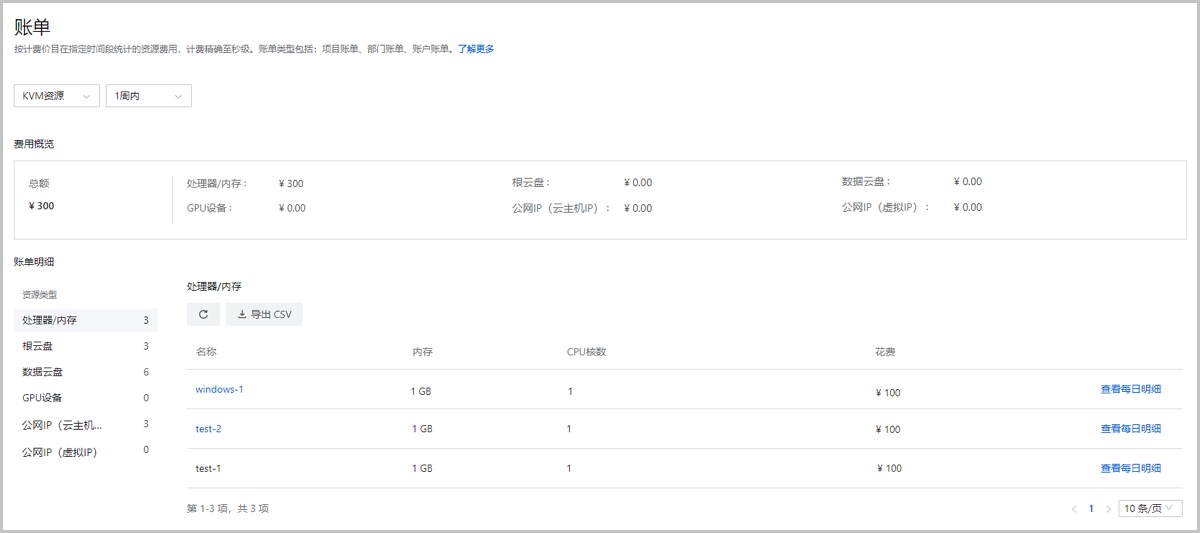 • 在账单明细列表,支持以资源为单位定时查看资源账单。