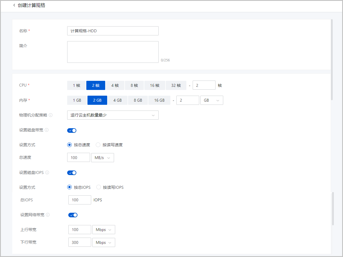• 方法一:创建计算规格时,同时设置网络带宽。使用该计算规格创建的云主机网卡将继承QoS设置。