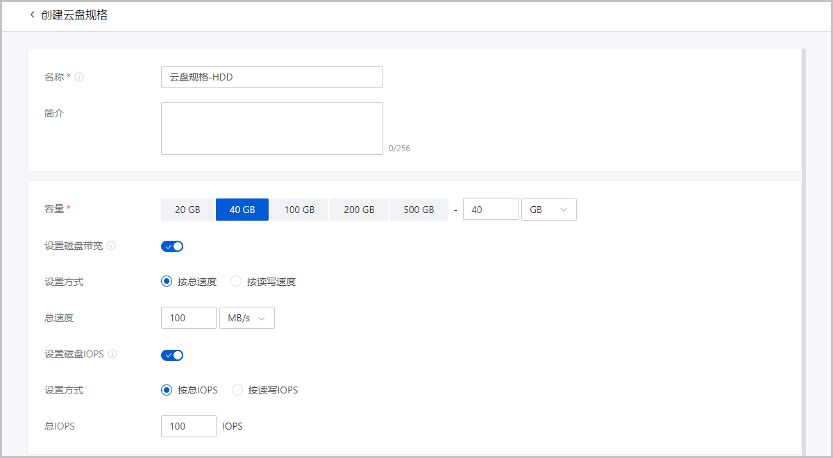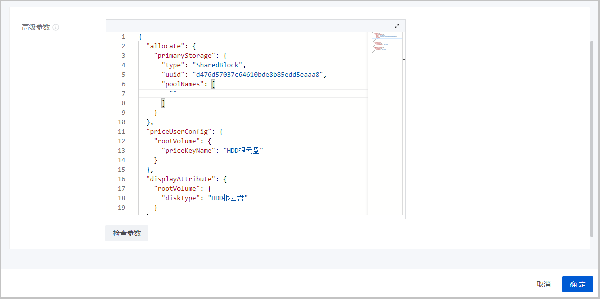 • 高级参数:通过JSON格式配置高级参数,根据磁盘性能自定义计费