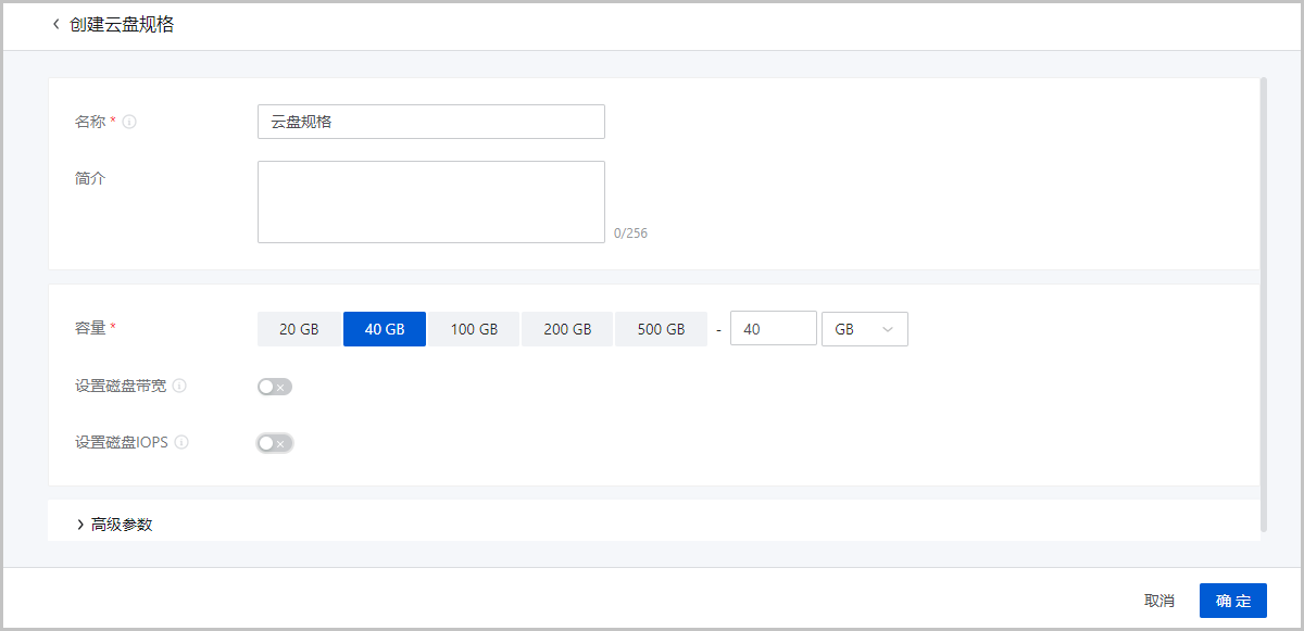 • 名称:设置云盘规格名称