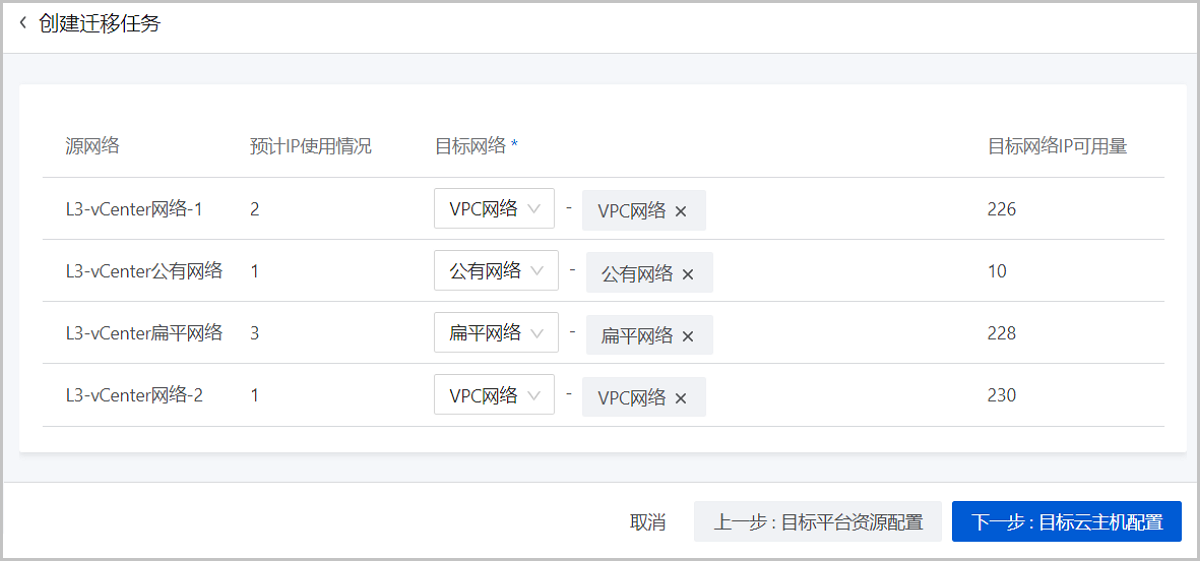 • 如果不设置,V2V迁移将默认使用管理网络。