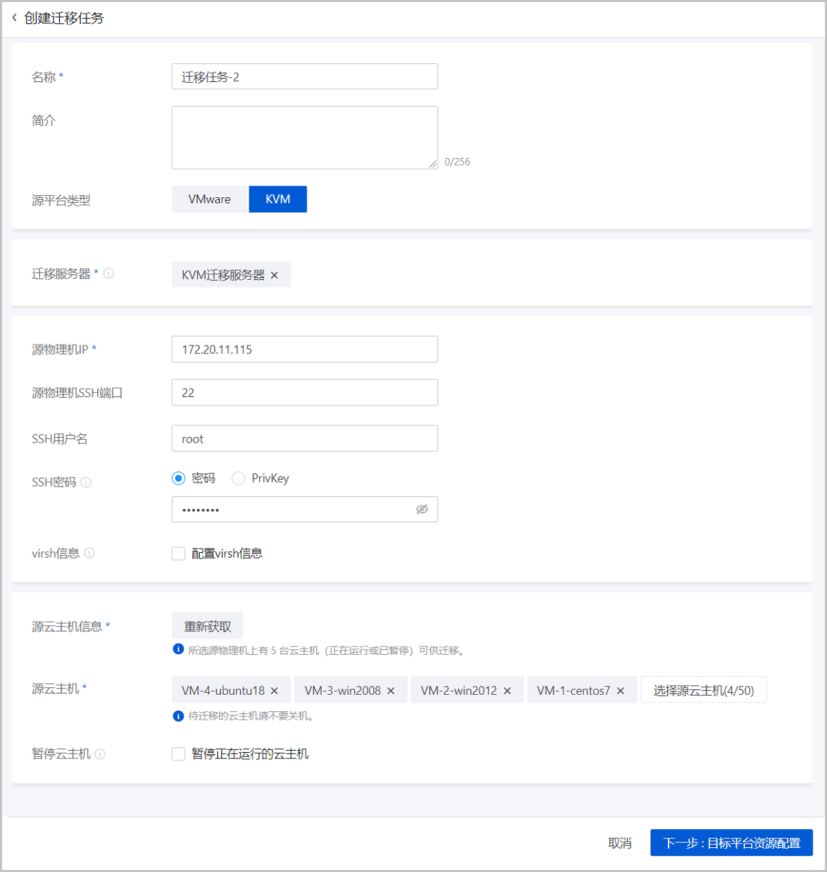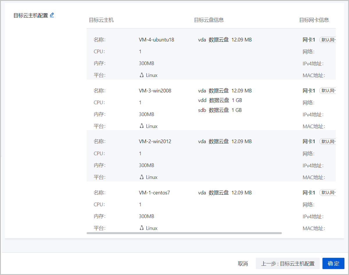 4. 目标云主机配置。