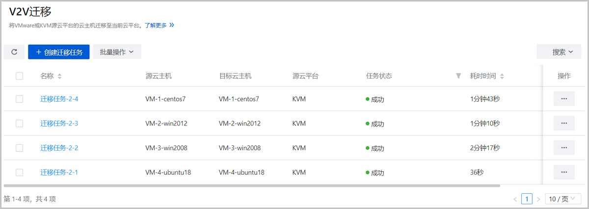 2. 创建V2V迁移任务,将已接管的4台vCenter云主机迁移至当前云平台。